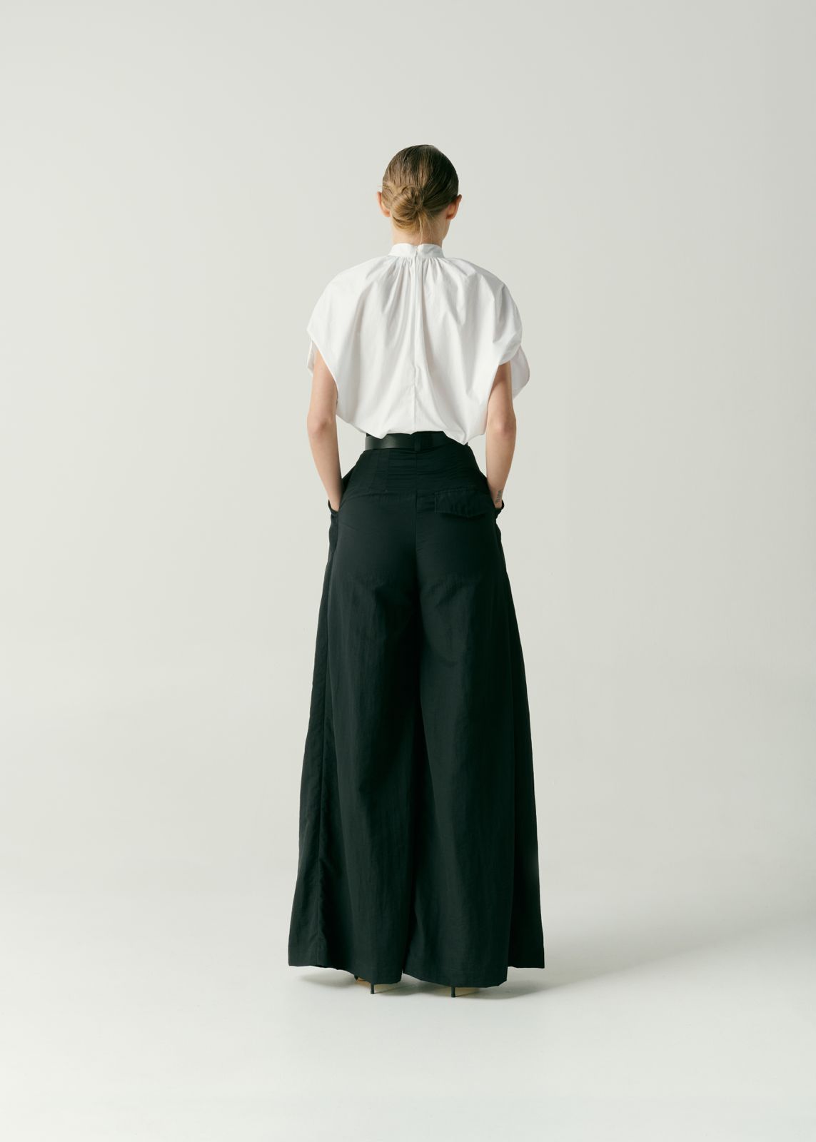 Pantalón wide leg, en mezclilla con efecto lavado. Dobladillo ancho y pronunciado. Dos bolsillos a los costados y detalle de tres falsos bolsillos; dos en la parte posterior y uno en la parte delantera. Presillas en la cintura. Etiqueta de cuero de la marca en la parte posterior. Composición: 100% Algodón. Cuidados: Lavado en Seco.